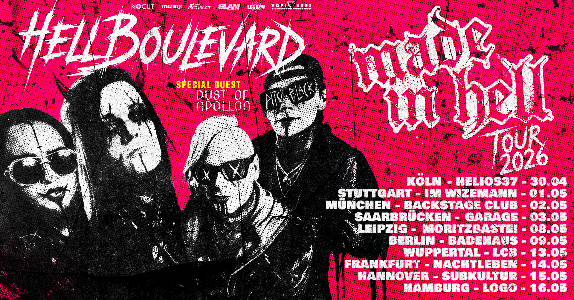 Begleitet werden Hell Boulevard auf der gesamten Tour von Dust of Apollon als Special Guests – ein starkes Paket, das bereits jetzt energiegeladene Abende und eine dichte, atmosphärische Live-Erfahrung verspricht.
