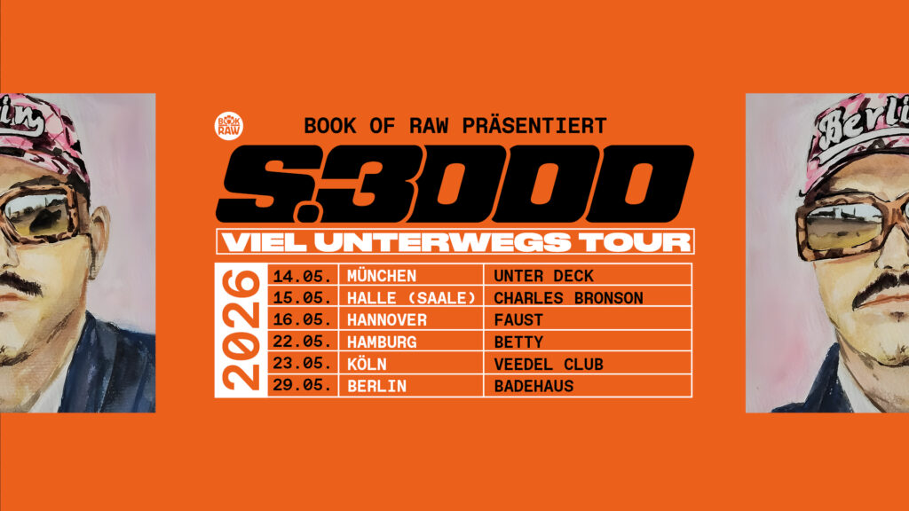 Und am Ende in die Kneipe! S.3000, der Sonnenbrillenträger aus Nordberlin, kommt mit einer gehörigen Portion gute Laune auf Deutschlands Bühnen. Egal ob auf BoomBap-Bretter oder auch mal schiebende Technohits. Wenn S.3000 auf der Bühne steht, geht es ab. Ganz sicher! Es geht um Atz*innen, unterwegs sein und natürlich ganz viel Bier.